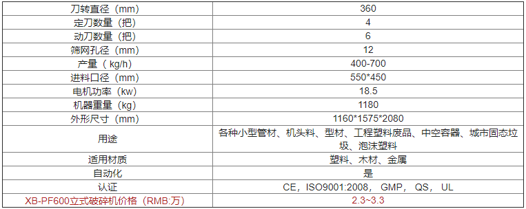 | XB-PF600立式破碎機價(jià)格(RMB:萬(wàn)) | 歡迎來(lái)電咨詢(xún) |
