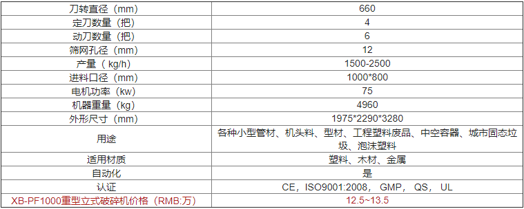 | XB-PF1000重型立式破碎機價(jià)格(RMB:萬(wàn)) | 歡迎來(lái)電咨詢(xún) |