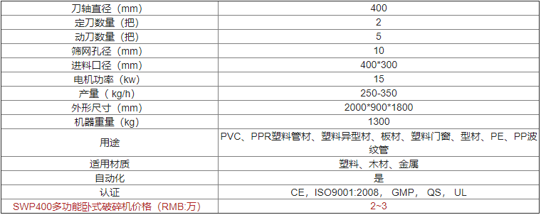 | SWP400多功能臥式破碎機價(jià)格(RMB:萬(wàn)) | 歡迎來(lái)電咨詢(xún) |
