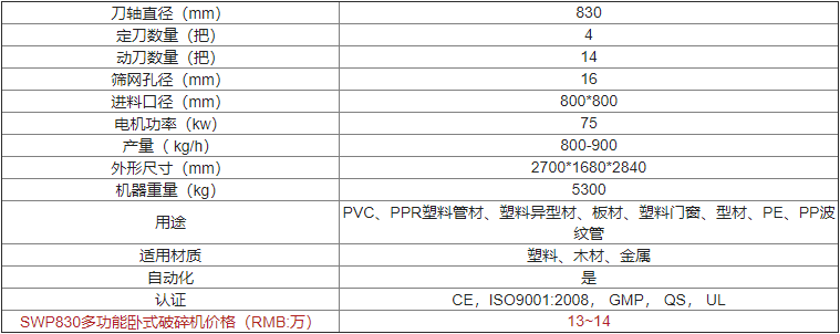 SWP830多功能臥式破碎機價(jià)格