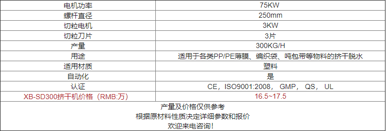 XB-SD300擠干機價(jià)格及參數