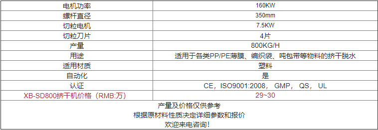 XB-SD800擠干機價(jià)格及參數