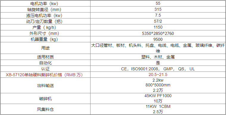 | XB-57120單軸硬料撕碎機價(jià)格(RMB:萬(wàn)) | 歡迎來(lái)電咨詢(xún) |