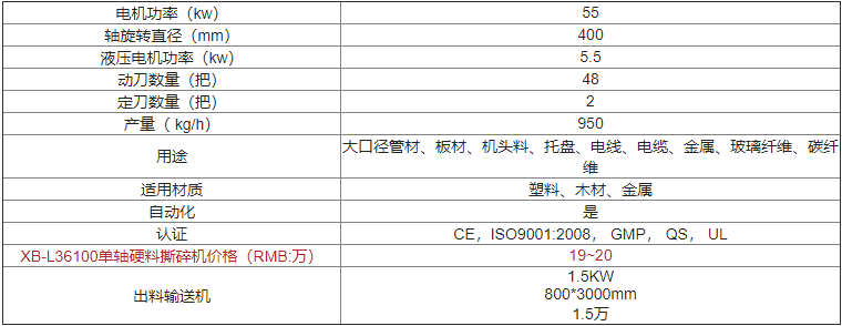 | XB-L36100單軸軟料撕碎機價(jià)格(RMB:萬(wàn)) | 歡迎來(lái)電咨詢(xún) |
